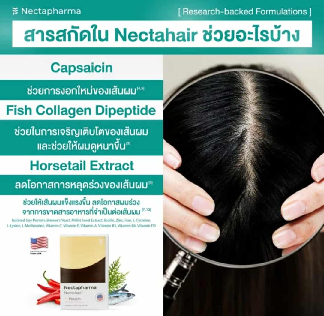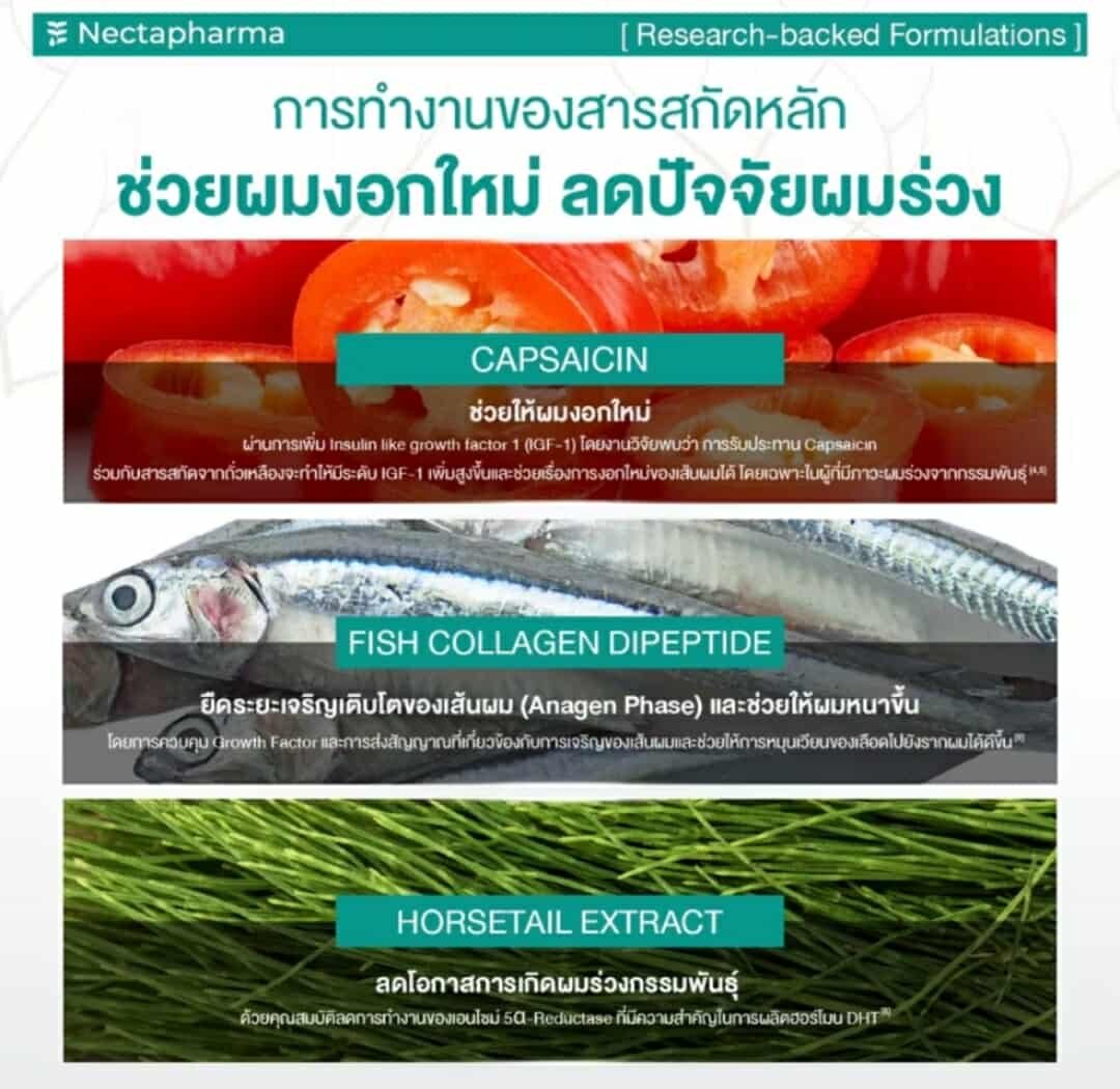 Promotes hair regrowth by increasing Insulin-like growth factor 1 (IGF-1). Research has found that taking capsaicin together with soybean extract increases IGF-1 levels, promoting hair regrowth, especially in those with hereditary hair loss.