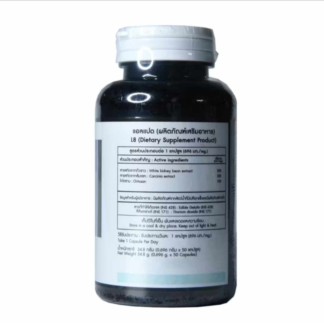 L8 dietary supplement claims to have properties to help with weight loss by trapping fat and is a natural dietary fiber. The main active ingredient is chitosan, which is extracted from the shells of marine animals such as shrimp and crabs. Chitosan has the ability to trap fat and cholesterol that have a negative charge, making the body unable to absorb those fats for use. In addition, chitosan acts as a dietary fiber, adding fiber to the digestive system, making you feel full and helping to cleanse the intestines.