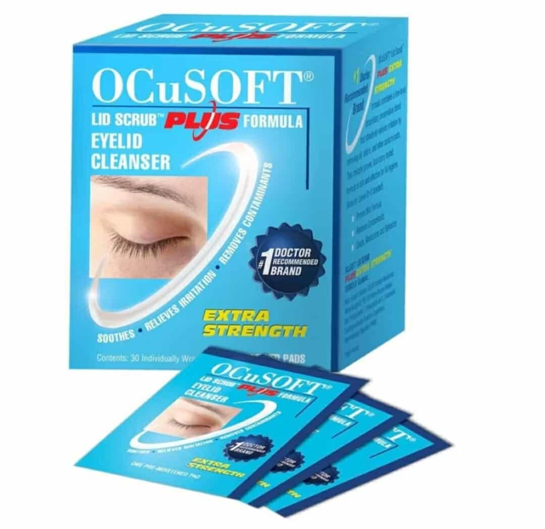 Eye cleansing pad.OCuSOFT Lid Scrub Plus is an extra strength leave on-formula which effectively cleanses and removes contaminants for maximum relief. It is Ideal for moderate to severe eyelid conditions and irritated eyelids.