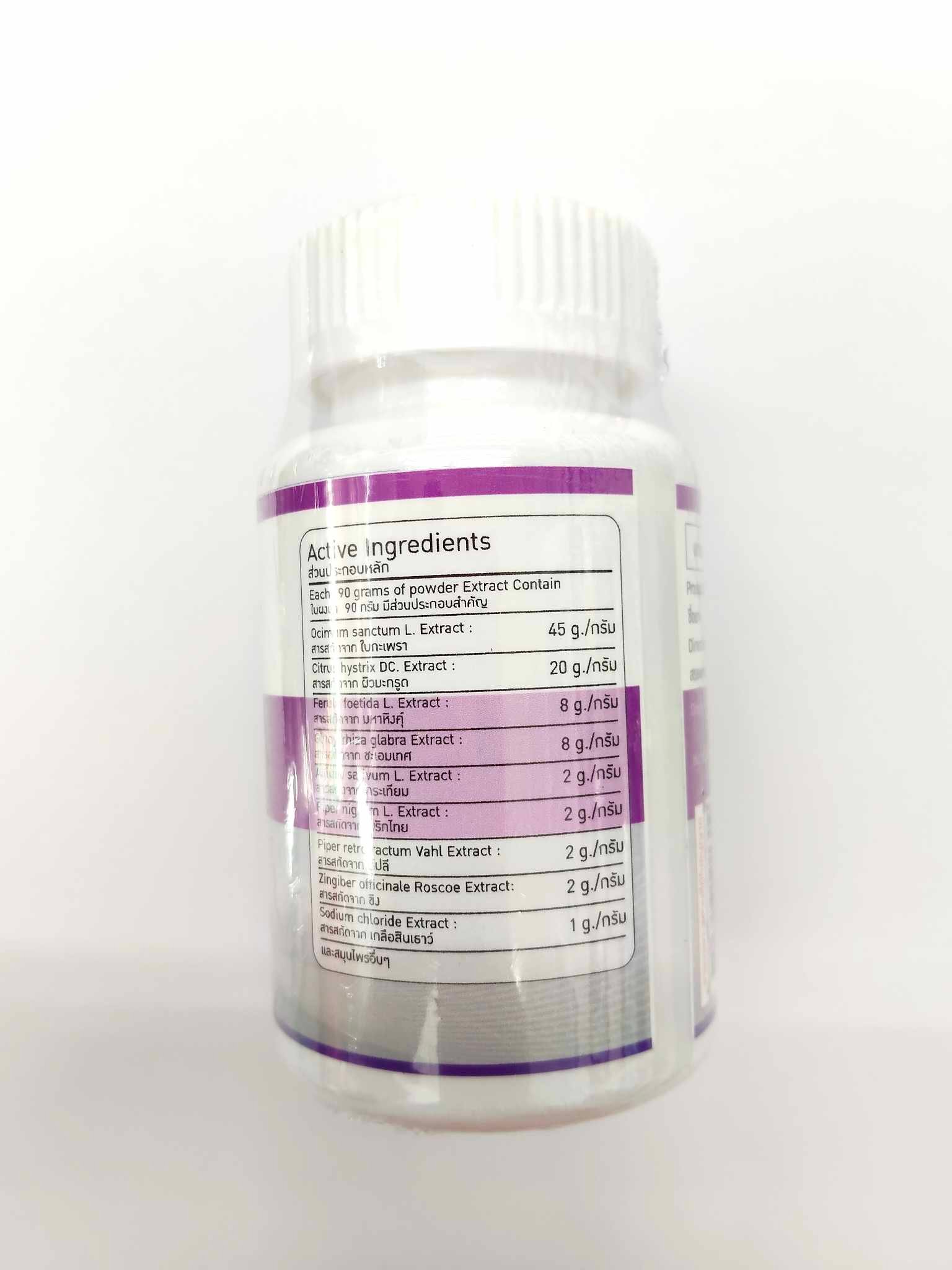It is a mixture of various Thai herbs such as licorice, prai, ginger, deep leaf, garlic, pepper and basil.