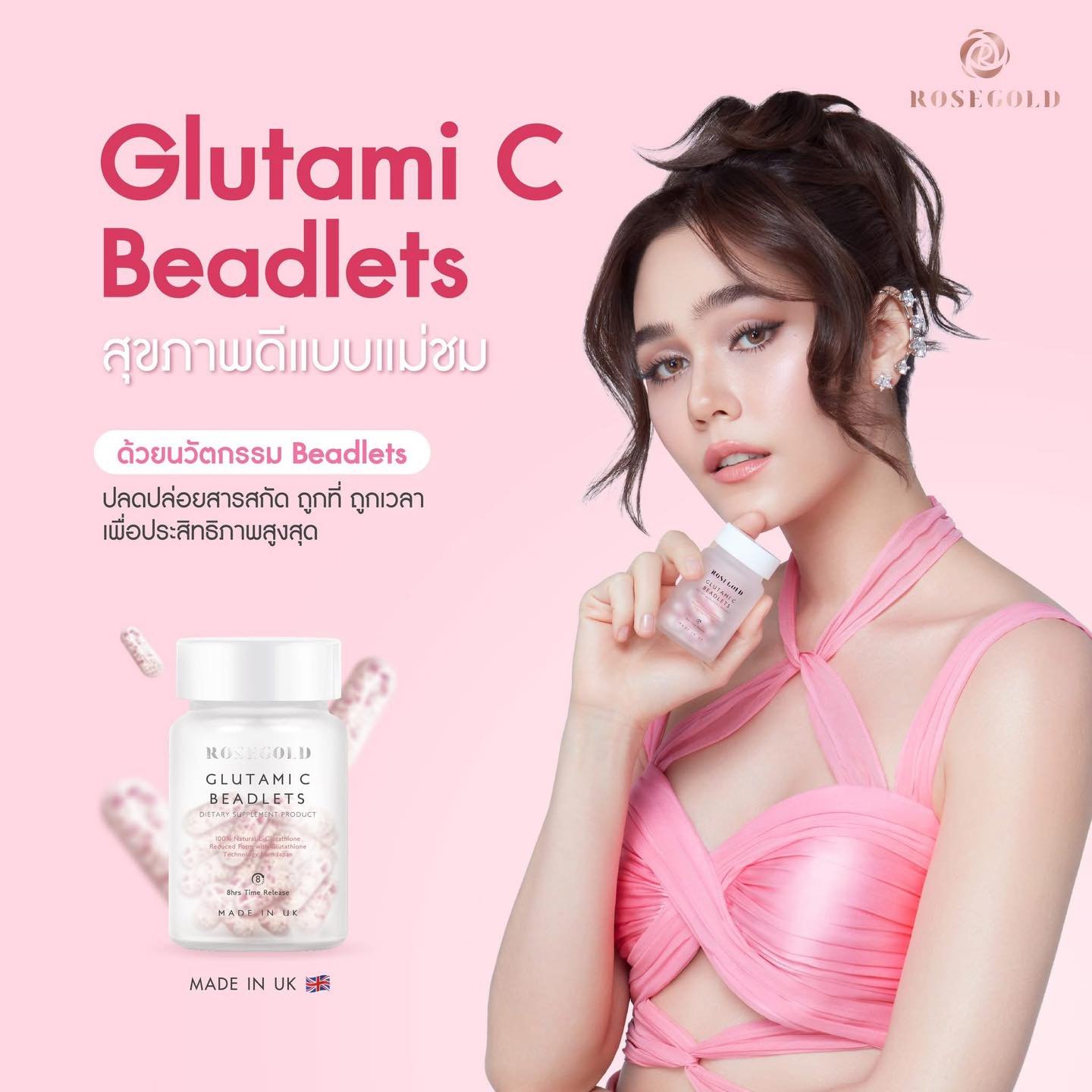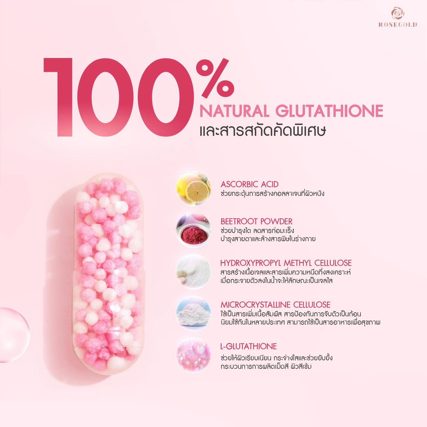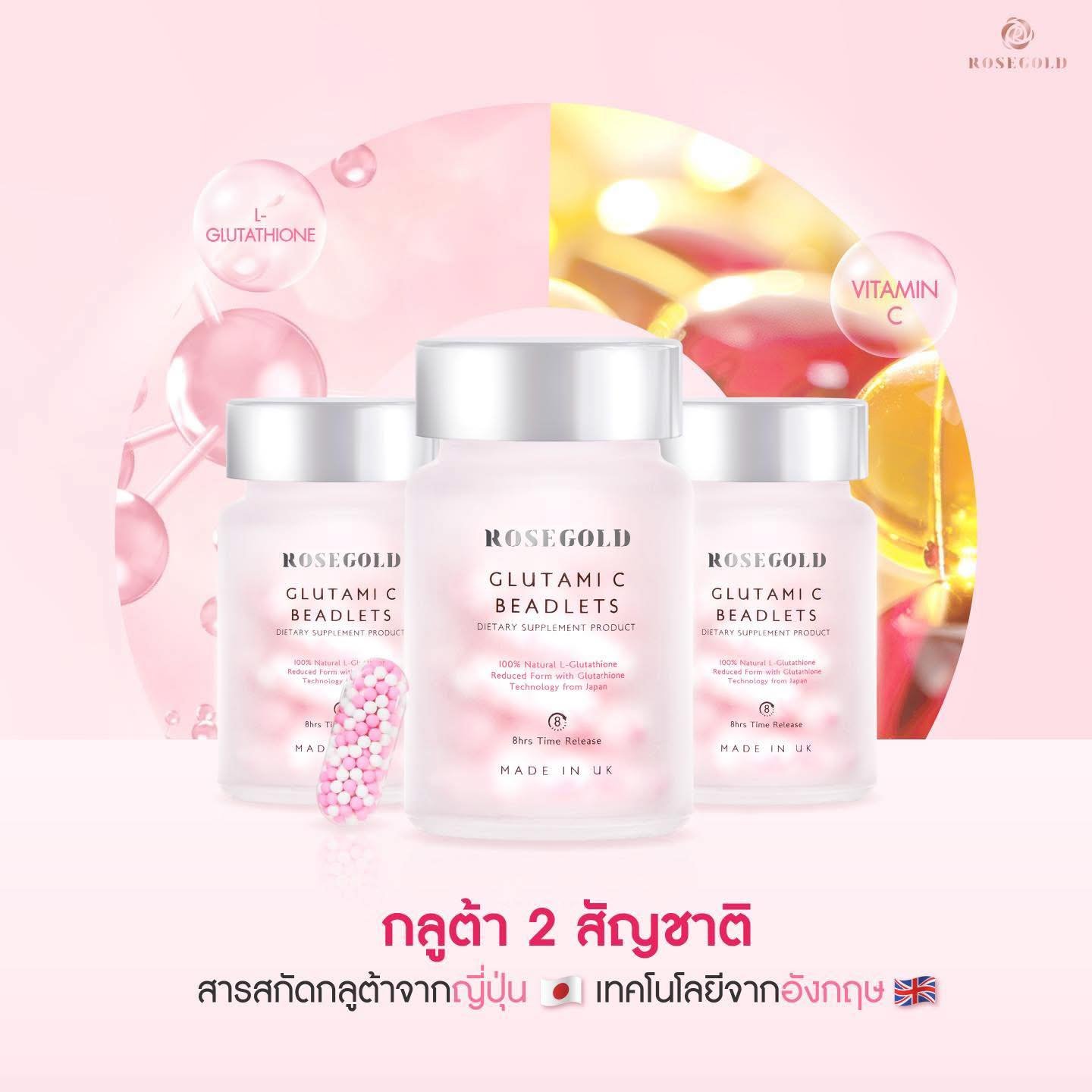 Rose GoldGlutami C Beadlets Whitening Heathy Skin Anti-Aging Wrinkles 21 Capsule