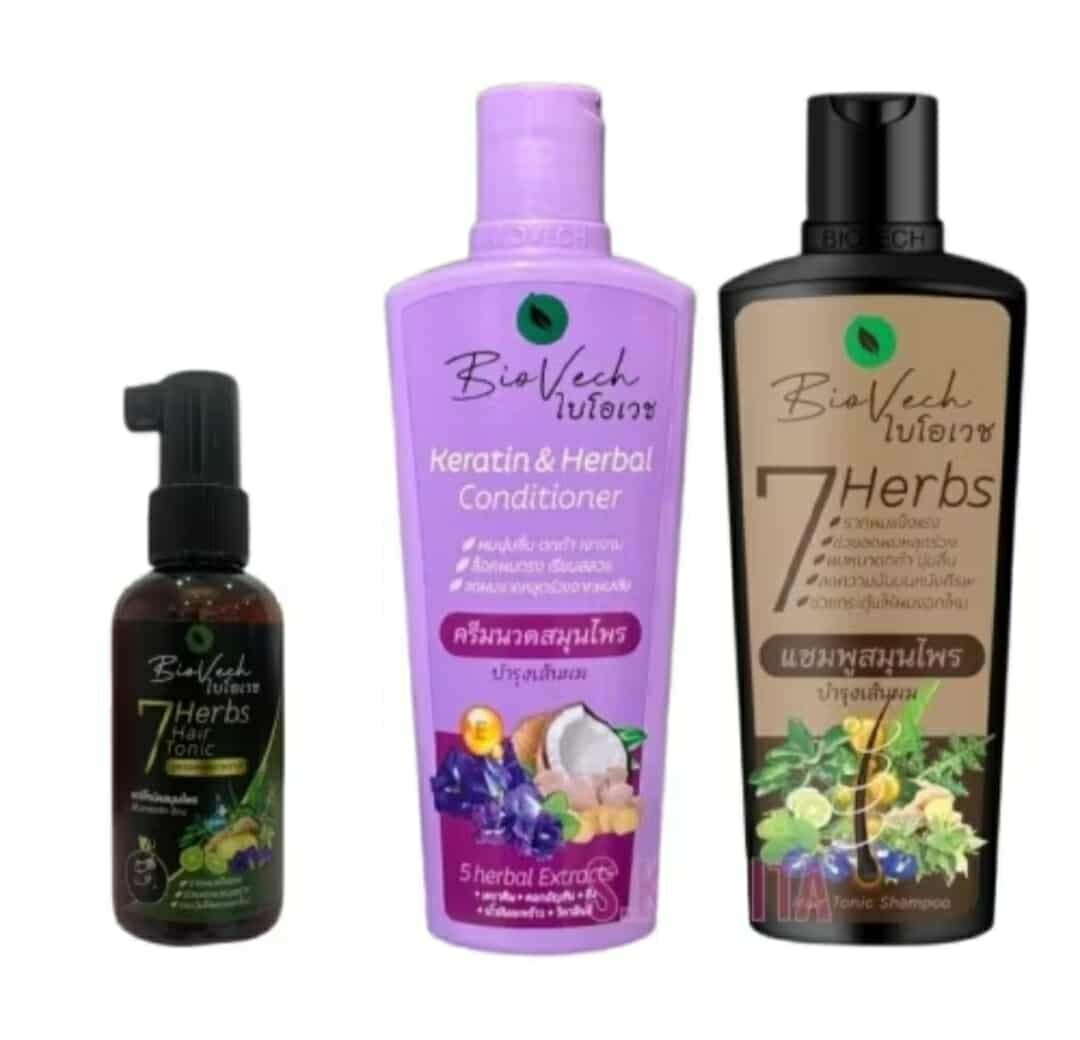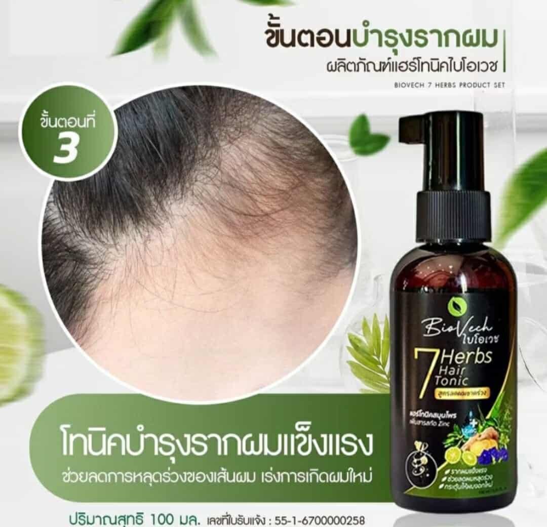 Product details: Biovech Seven Herbs Hair Tonic Shampoo promotes hair growth, prevents hair loss, and nourishes hair. It repairs fine, brittle, and split ends, resulting in thick, dark hair. It reduces graying, moisturizes the scalp, and reduces dandruff.