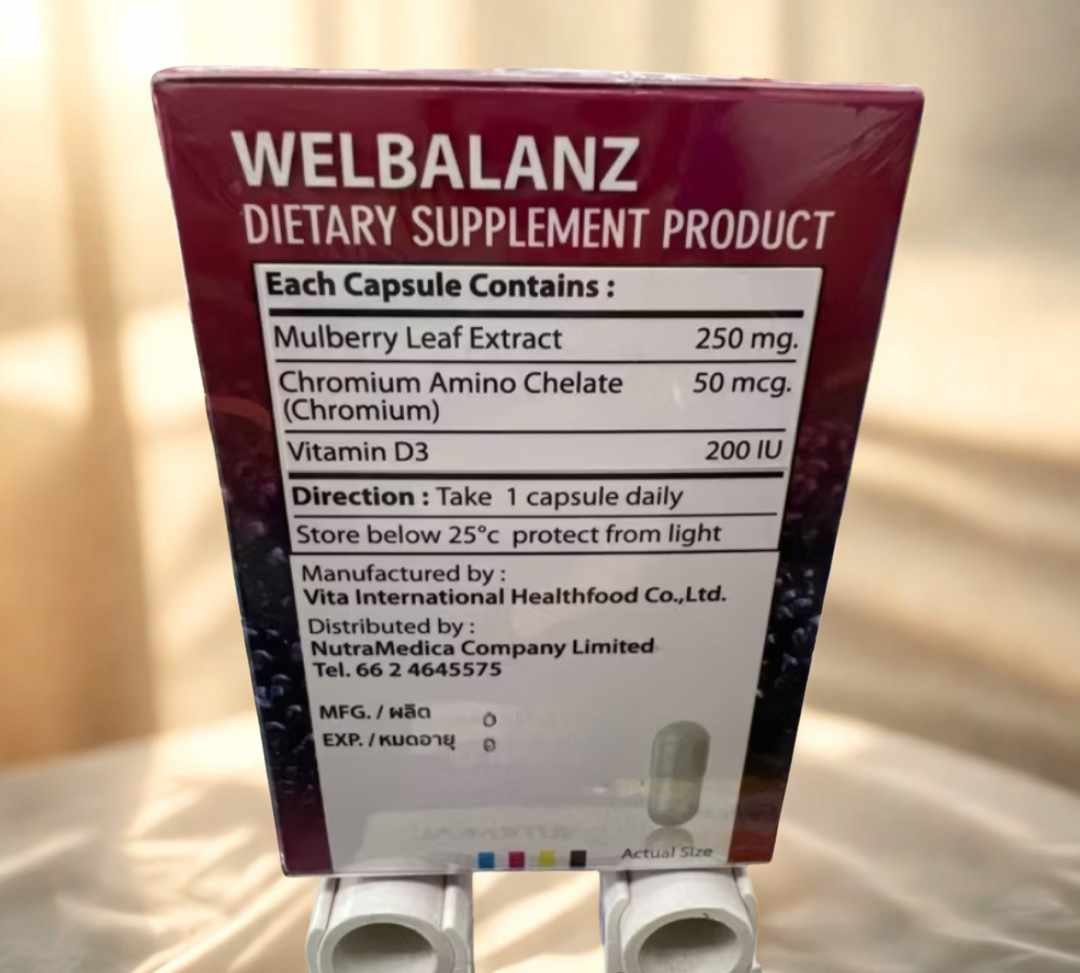 Active ingredients Mulberry Leaf Extract 250 mg Chromium amino acid complex 5 mg Vitamin D3 200 IU